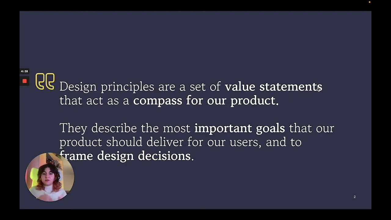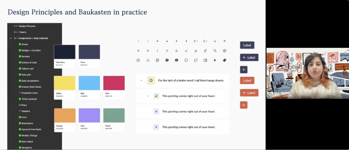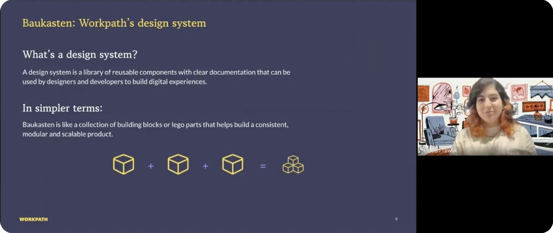 This of course was not exclusive to design systems, but for the sake of giving a tangible example, I've attached these screenshots from a recorded townhall spotlight session where I presented to roughly 80 employees an explainer on Design principles and our Design system and how they work together to ensure we have a consistent product.